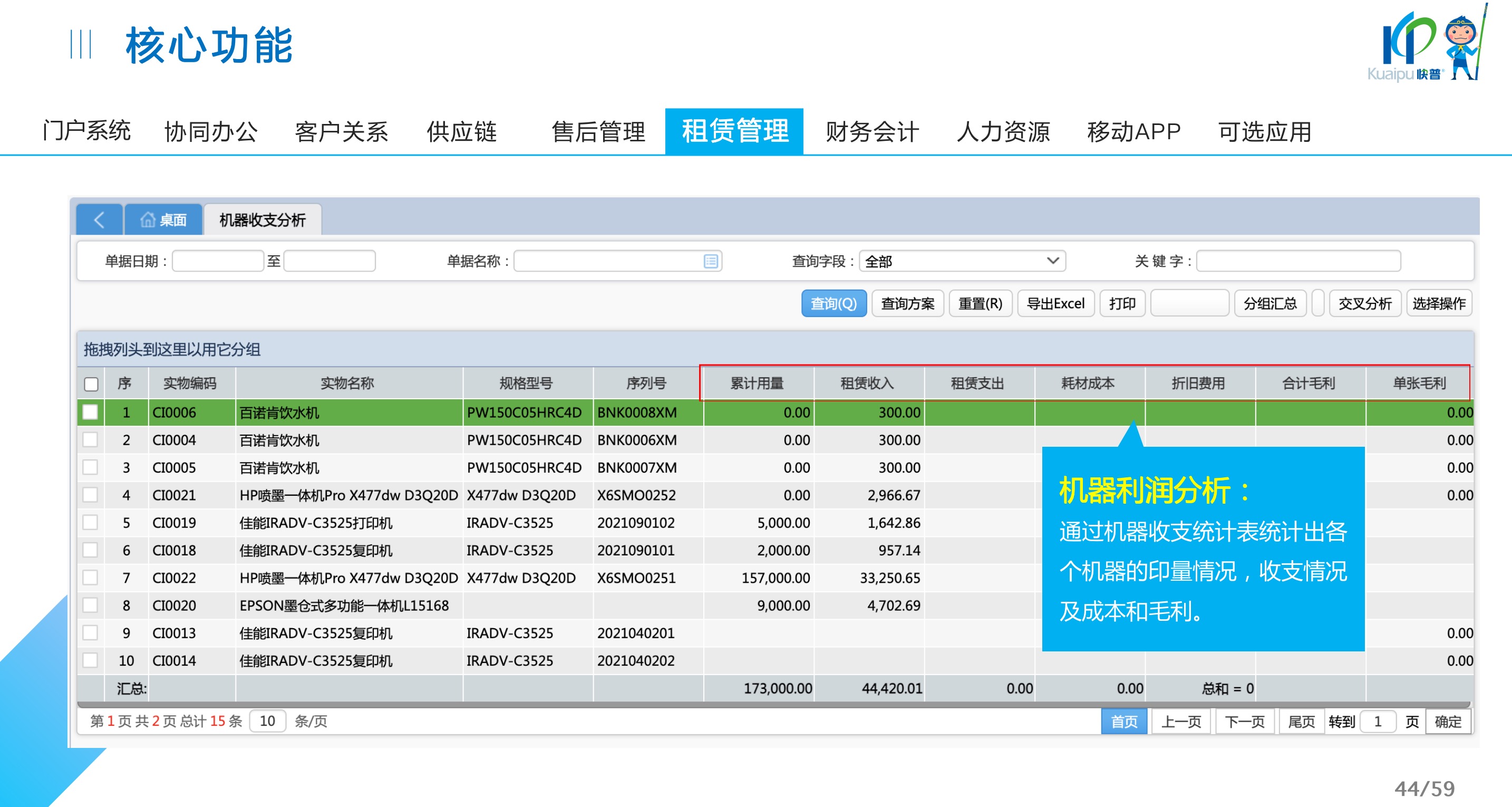 快普易30基于快普近20年在全國(guó)上萬(wàn)家OA企業(yè)的實(shí)施與服務(wù)經(jīng)驗(yàn),融合了行業(yè)成功的管理智慧,以“客戶+機(jī)器”為中心提供數(shù)字化轉(zhuǎn)型解決方案,全面解決銷售、服務(wù)、租賃等多種業(yè)務(wù)模式的管理需求,以及企業(yè)經(jīng)營(yíng)核算分析。