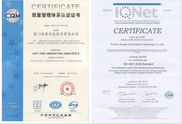 自公司成立起,快普就嚴(yán)格按ISO9001質(zhì)量體系標(biāo)準(zhǔn)進(jìn)行規(guī)范化運(yùn)作。今年年初快普公司正式引進(jìn)ISO質(zhì)量管理體系進(jìn)入輔導(dǎo)期以來,經(jīng)過半年多貫標(biāo)工作的深入開展,今年8月,審核專家對(duì)快普公司質(zhì)量管理體系運(yùn)行的有效性、符合性給予了高度的評(píng)價(jià),一次性便順利通過了方圓認(rèn)證集團(tuán)的嚴(yán)格審核,并獲得了ISO9001國際質(zhì)量管理體系認(rèn)證證書。