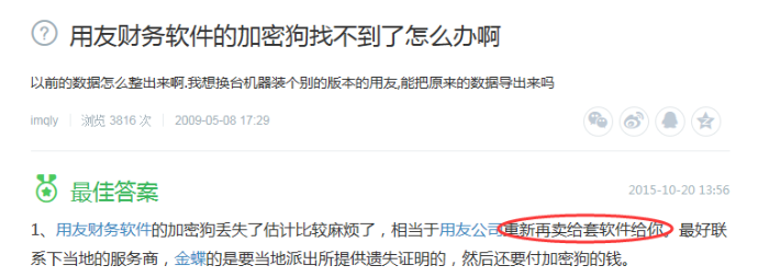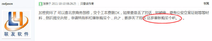 1、有一家客戶反應(yīng)公司搬遷時(shí)快普軟件加密狗丟失并且提供了公安局蓋章證明原件,事后發(fā)現(xiàn)原來的軟件加密狗并沒有丟失,還在正常使用,經(jīng)過多次溝通拒不還回新發(fā)的軟件加密狗。