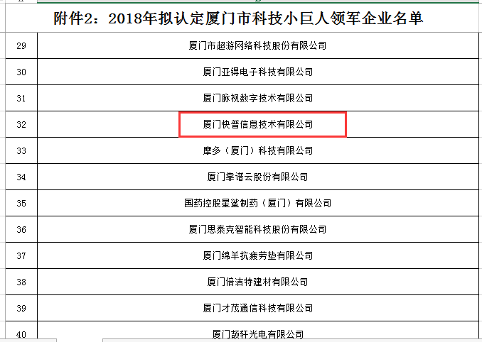 近日,快普獲“廈門市科技小巨人領(lǐng)軍企業(yè)”榮譽(yù)稱號,這是繼2017年獲得廈門市科技小巨人企業(yè)后,再次榮膺領(lǐng)軍企業(yè)行列。