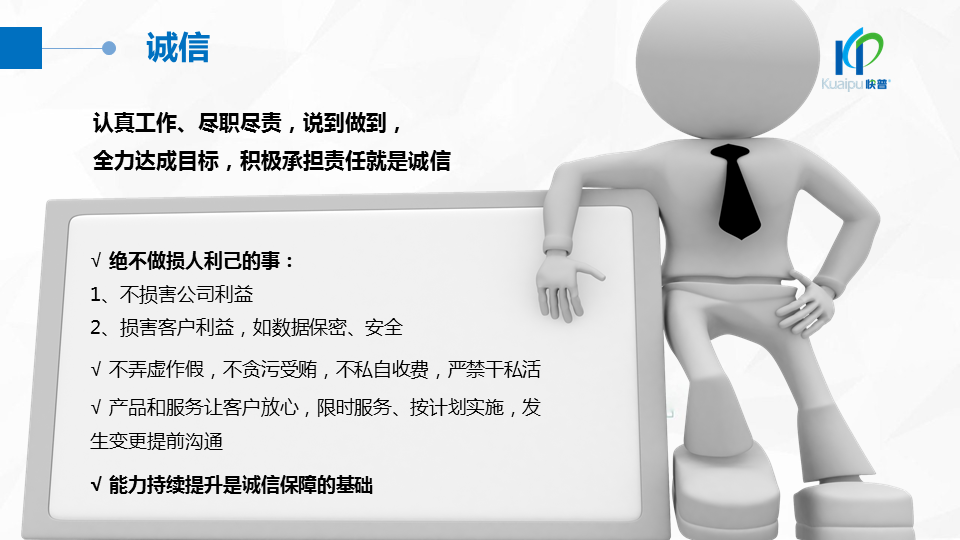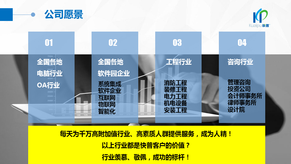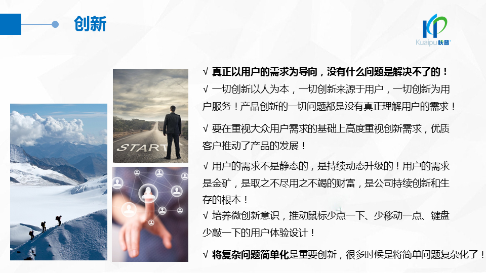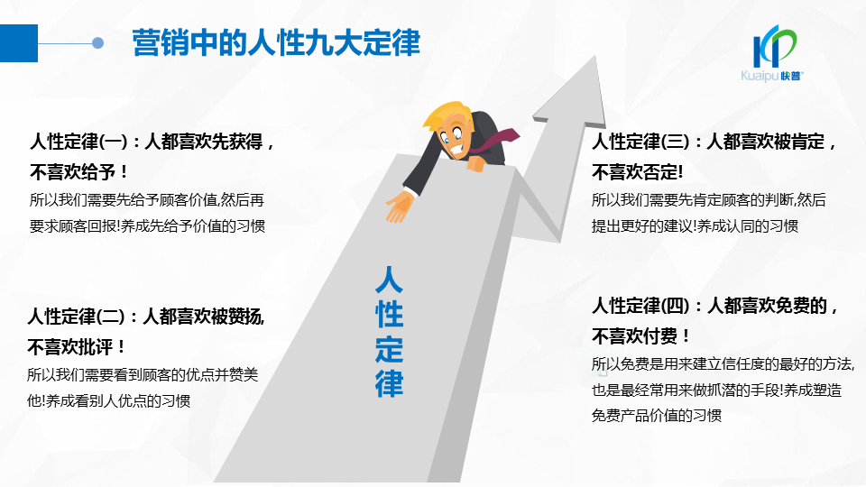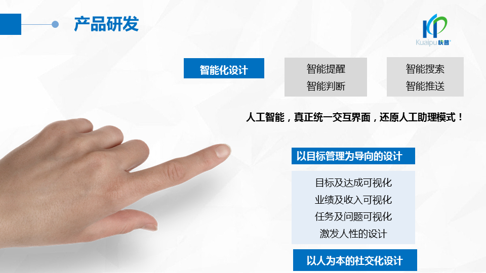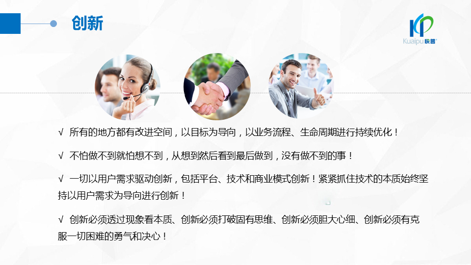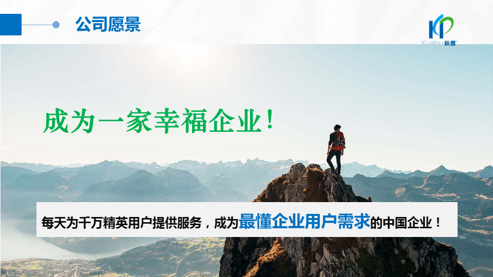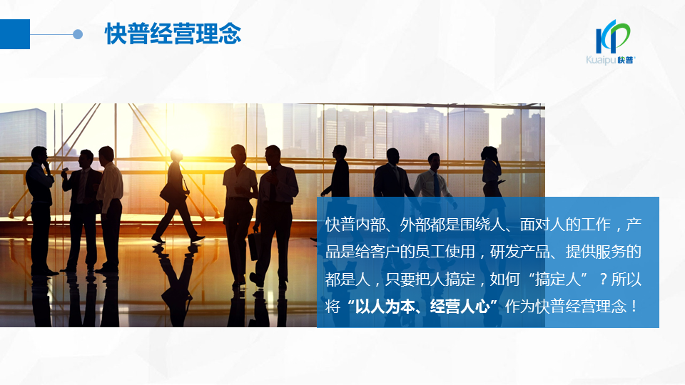 溫董在大會上指出:“成功的企業(yè)、成功的產(chǎn)品都在做符合人性的事!成功的個人都在挑戰(zhàn)人性弱點!作為中國企業(yè)信息化管理的服務商,我們應該充分理解人性定律,為客戶提供一切人性化的產(chǎn)品與服務,讓快普成為最懂企業(yè)用戶需求的中國企業(yè)!”