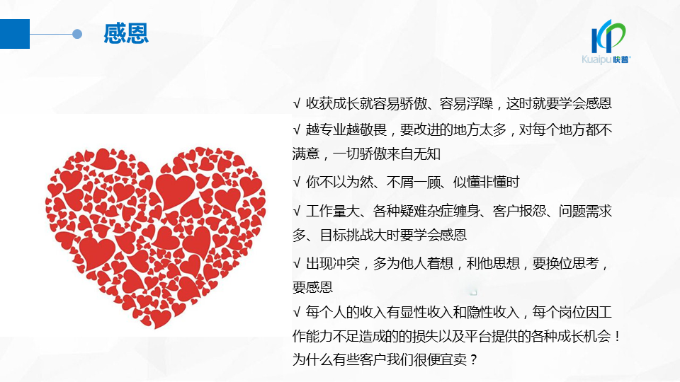 2018年9月,快普董事長溫祝平先生發(fā)表《快普經(jīng)營哲學2.0》,指出“以人為本、經(jīng)營人心”的經(jīng)營理念,強調進一步建設“幸福企業(yè)文化”的重要性。