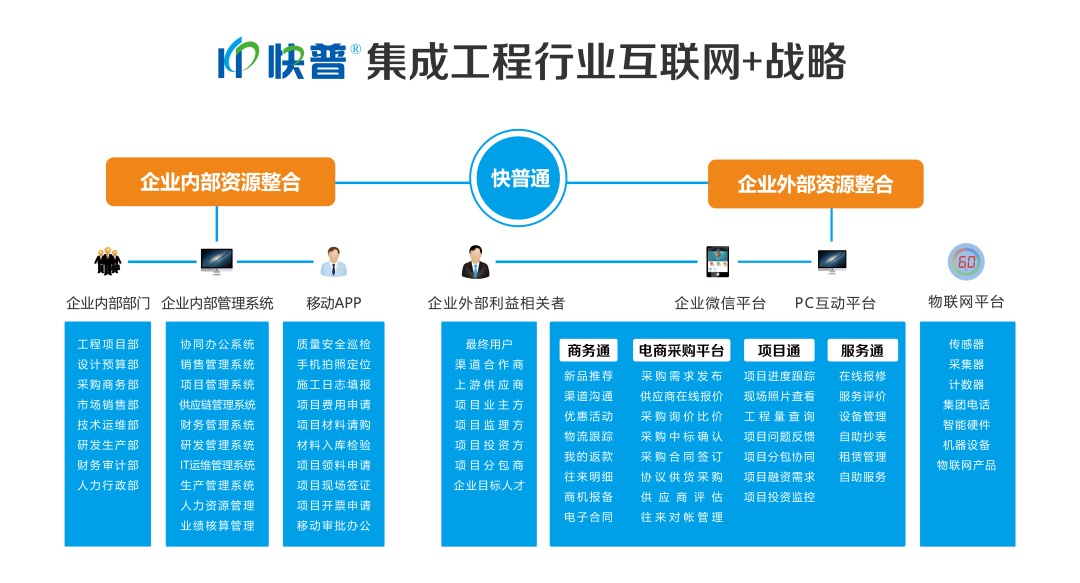 快普集成行業(yè)信息化解決方案全面滿足了集成企業(yè)對客戶關系、供貨管理、項目進度、項目核算、招投標、IT運維等6大核心管理需求,幫助企業(yè)提升運營效率,提高競爭力。