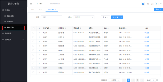 方法二、 通過自助平臺→工作臺→我的工單,查看所有工單記錄
