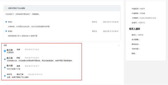 第二步:工單被客服認領(lǐng)后,您可看到左上角有具體的受理工程師,咨詢自動形成一個問題管理。