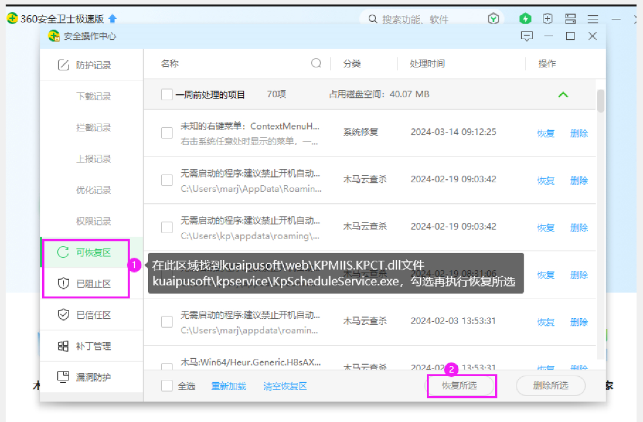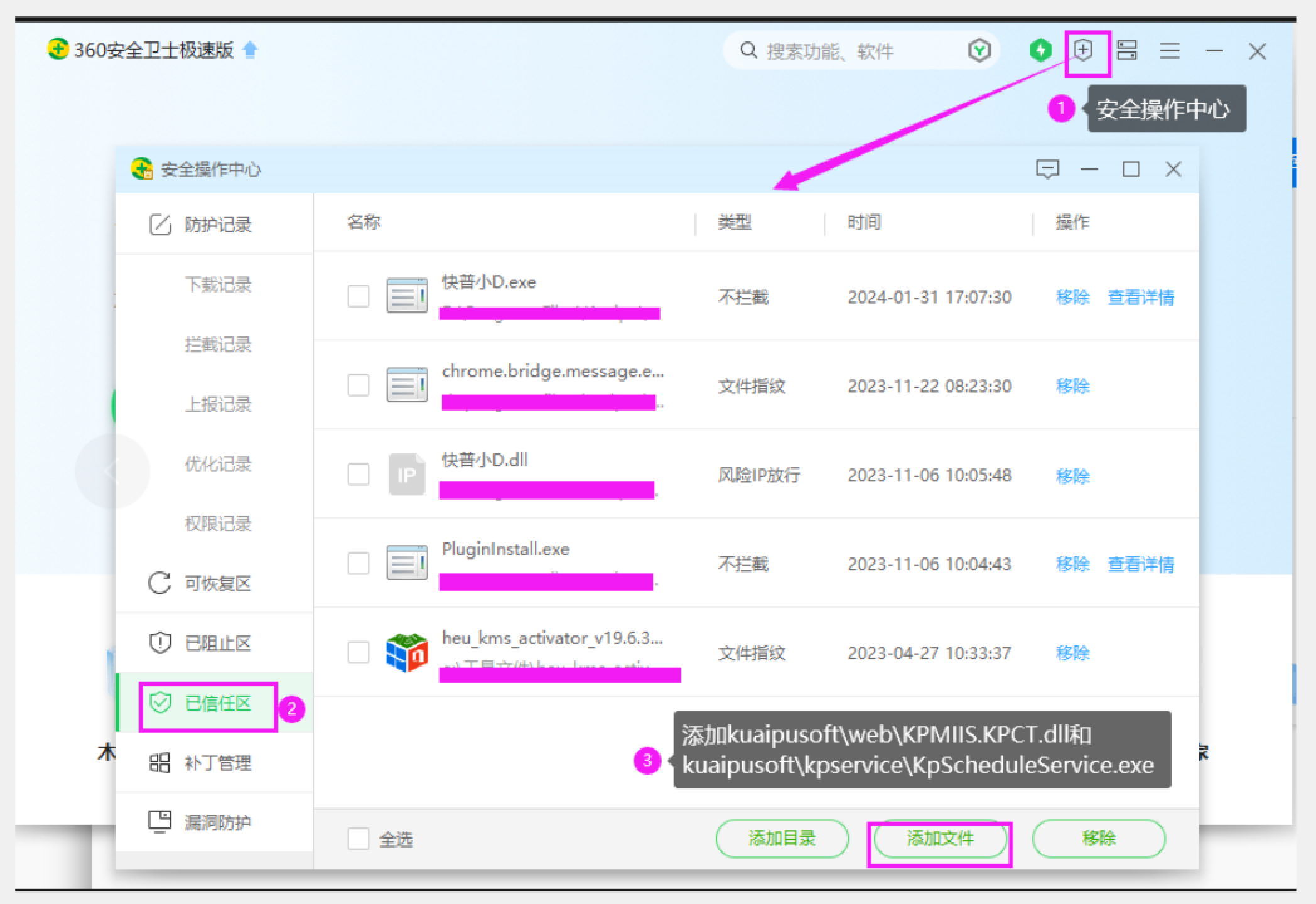 沒(méi)加入信任就被360隔離的,上面截圖那幾個(gè)文件可在隔離區(qū)恢復(fù),恢復(fù)后按上面方法加入信任: