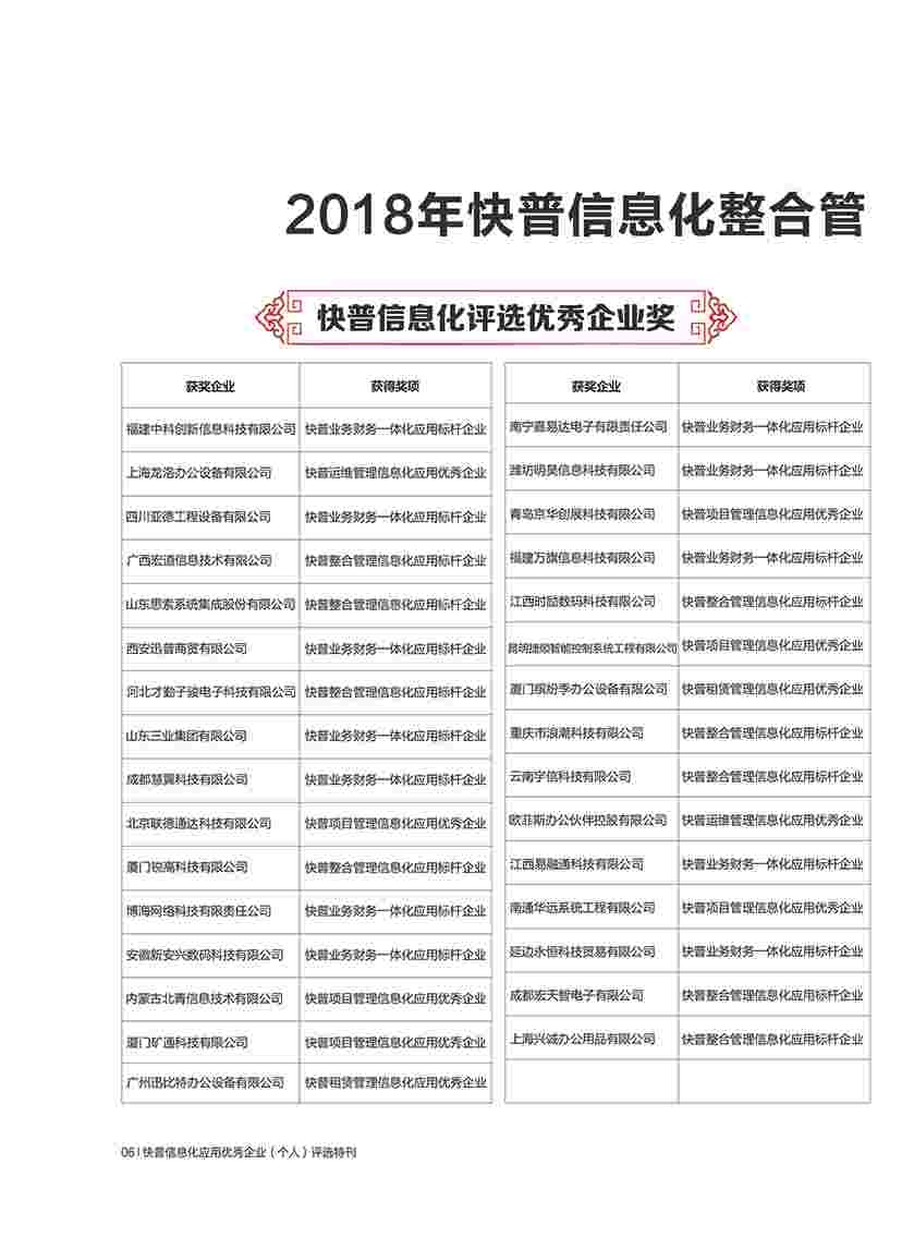 2018快普信息化應(yīng)用評(píng)選特刊